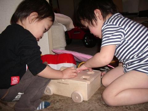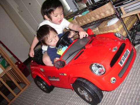 保育園から帰ってくるなり、二人で乗って大喜びです♪
