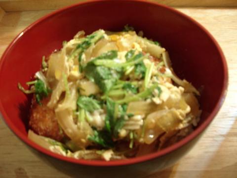 『帆立カツ丼』の完成です[:グッド:](写真ブレちゃいました[:汗:])