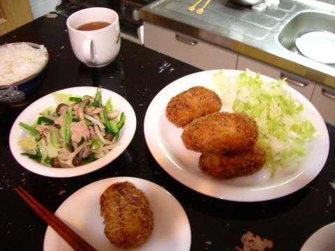 [:上:]晩御飯[:ごはん:]→“肉じゃがコロッケ・野菜炒め”