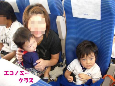 エコノミー席でしかも抱っこだと結構狭いですねぇ〜[:ぷー:]我慢我慢・・・。