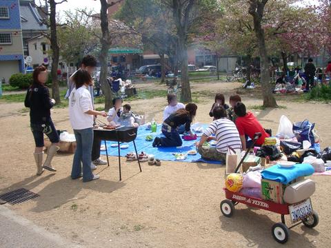 今日は、昨日のメンバーが半分減りHirojinの従姉妹達が主催のお花見BBQ[:晴れ:]