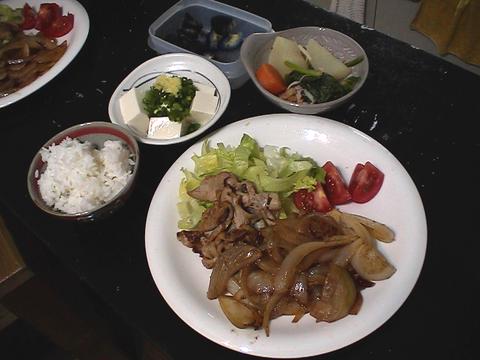 [:上:]晩御飯[:ごはん:]→“豚の生姜焼き・大根の煮物・冷奴・茄子の漬物”