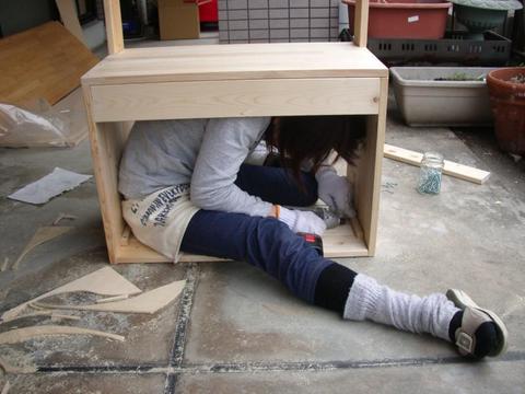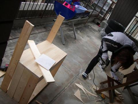 ↑Hirojinは、留めにくい箇所のビス打ちに必死[:あひ:]