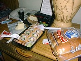 ロングビーチのRalphs(ラルフス)、カリフォルニアではおなじみのスーパーであるが、ここへ買い出しに。カリフォルニアロールとパン、茹でた野菜の惣菜、マーガリンをゲット。このRalphs、Ralphs倶楽部に入会すると、ただでさえ安い物が本当に安くなる。1つ1ドルのものが、4つで1ドル50セントになったりするのだ。今日は、素敵なレジのおねーさんが、自分のカードを通してくれたので会員価格でゲット。米国に来てから2日に一回はスーパーに行っている。お世話になるのはRalphsかVONS、どちらも品揃えが多く楽しいスーパーである。ちなみに、本日行ったロングビーチのRalphsはさすがに海に近いだけあり生の魚介類が売っている。端には、寿司(上にぎり?)が5ドルほどで売られていた。本日購入のマーガリンは、ベジタブルオイルで出来ており、noコレステロール、チーズ風味のバターという感じでおいしい。1ドル99セントである。ラルフス会員は、1ドルで買える。