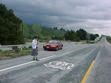 2002年3月26日。モニュメントバレーまで50マイル。この道は、「フォレスト・ガンプ」で見たことがある道路だ。入場料6ドルを支払い、おもしろい形をした岩を見る。何が何だかわからないがすばらしい。近くまで車で行っても良いとのことだったので、砂利の中を少し走ってみたが、マスタングの車高の低さではすぐに引っかかってしまうので諦めることに。普通なら2時間ほどで要所を見て回れるらしい。