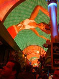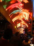 隣は土産物屋、もちろん店内にはスロットもある。カジノもかなりの数があり、全部で2ドルほど使ったが全然勝てず。2ドル=260円、これで大きな夢を見るのは大きな間違い。ちなみに、我が妹は、知らない間に25セントを75セントにしていた。奥の方にハワイ懐かしのABC STOREがあり、いろいろ見て回るがめぼしいものはない。アーケードのショーがはじまる時間になったので外でアーケードに映し出される光のショーを楽しむ。