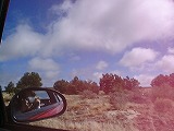 さて、めちゃ辛のポテトチップを片手に再びフリーウェイを走る。標高は5000フィート(1500m)程。牧場で牛が少し見えた以外は、ずっと砂漠と、赤い崖である。まるでグランドキャニオンのミニチュアのような景色である。程なくして雪がちらついてきた。