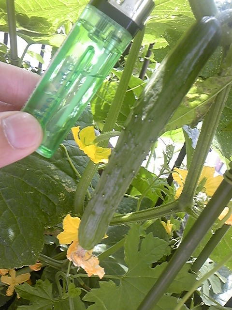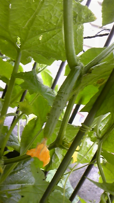 | 2009,06,11, Thursday 家庭菜園 胡瓜が大きくなってきました(^O^) (携帯からの投稿) |